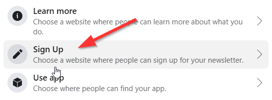 Add a Call to Action button on our Facebook page to let your Facebook subscribers sign up to your mailing list.