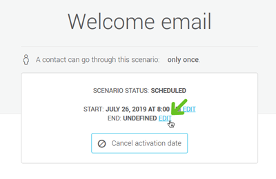 3. Click the "Cancel activation date" button and click "Yes" to confirm. The scenario will then go back to the "Under construction" status.