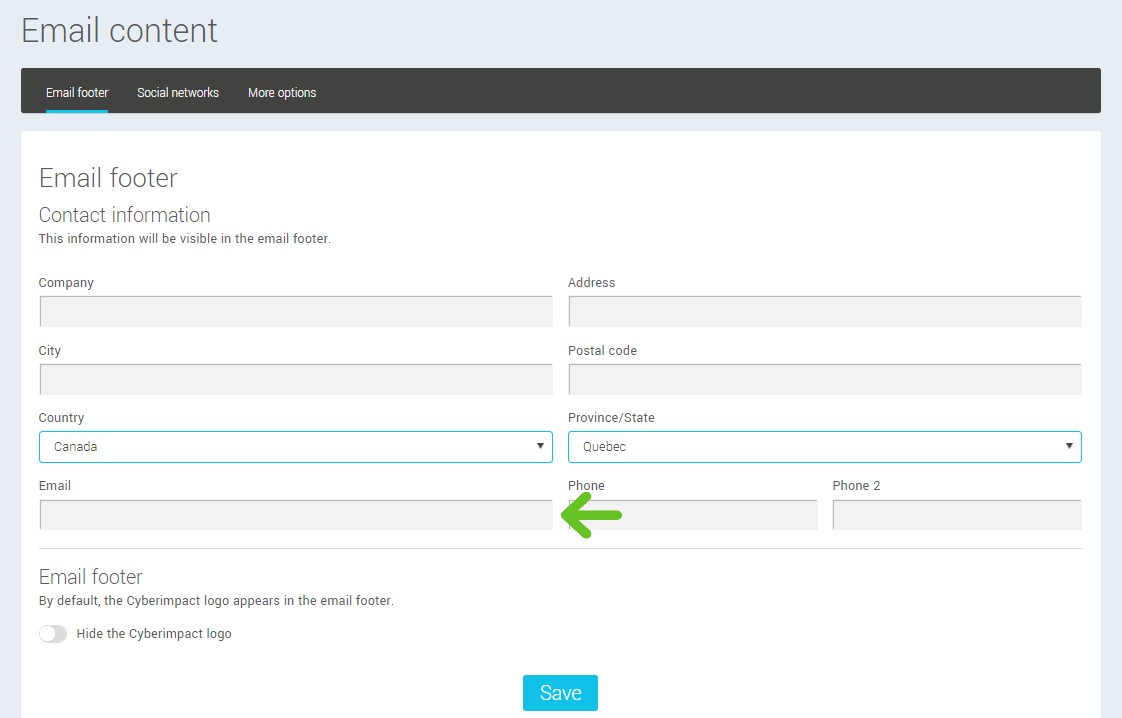 Note: the return address for subscription confirmation emails is, by default, the address you entered in the Email field of your Email footer section (to access it, hover your mouse over the gear icon at the top right of your account, and click Email footer).