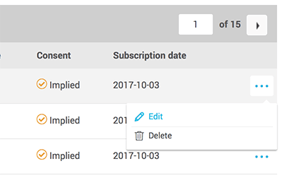 - Once you find it, open the actions menu located at the end of the contact's row by click the 3 dots icon and select the Edit option.