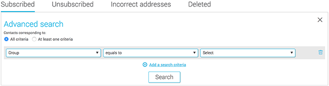 - If you delete the contacts from a group with the « Delete » option in the Contacts menu, this action is final. If these addresses belonged to other groups, they will be deleted from those as well.