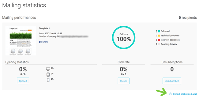 To export the global statistics for all your previous mailings to an Excel file, click on the Export button on the Global Statistics page.