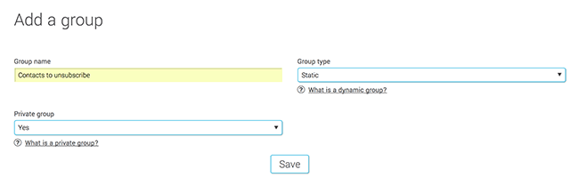 - Create a private group with a name that you'll easily recognize. For exemple: Contacts to unsubcribe.
