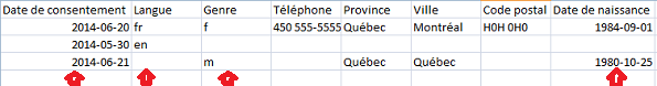 Si vous avez plusieurs lignes invalides et que vous avez de la difficulté à identifier qu'est-ce qui fait échouer l'importation, réduisez le nombre de colonnes de votre fichier et conservez seulement les colonnes dont vous souhaitez importer l'information. De cette façon, vous aurez moins de colonnes à passer en revue pour trouver où se trouve l'erreur.
