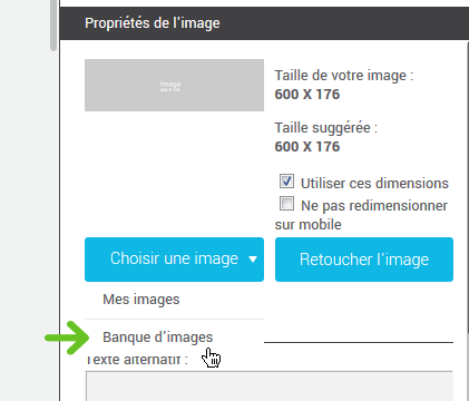 - Cliquez sur l'outil "Image" et choisissez ensuite "Banque d'images" dans le sous-menu.