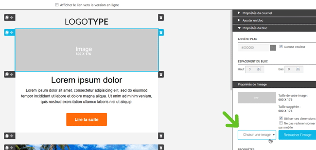 - Cliquez sur l'image appropriée pour la sélectionner et l'ajouter dans le bloc d'image.