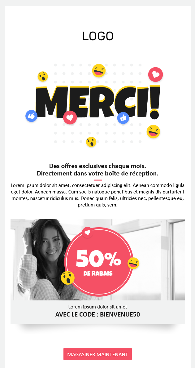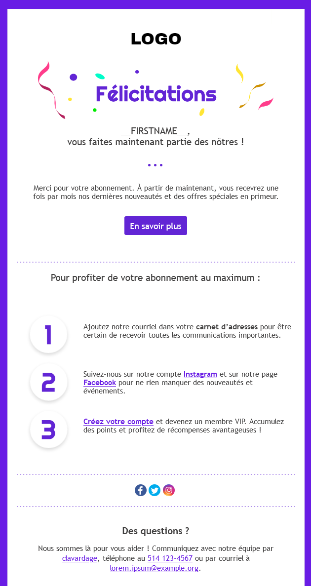 • Le courriel de bienvenue permet de débuter la relation avec vos abonnés du bon pied en les accueillant comme il se doit.