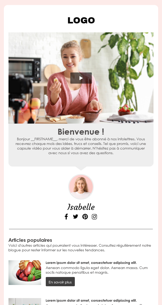 Puisez des idées dans nos modèles proposés. Voici quelques-uns de nos gabarits de bienvenue :