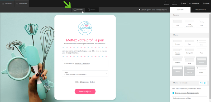 Dans l’éditeur de formulaires, cliquez sur les onglets Fureteur ou Mobile pour basculer d’un affichage à l’autre.