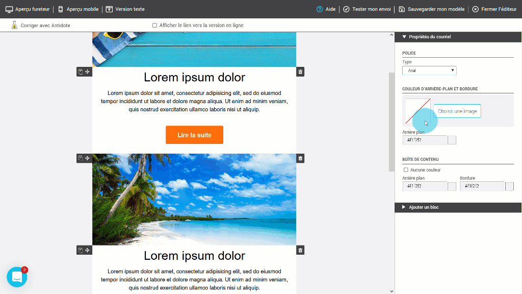- Modifiez au besoin sa couleur de fond ou sa hauteur.