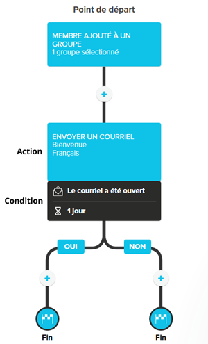 • A ouvert un courriel : peut être utilisé seulement à la suite d'une action "Envoi de courriel"