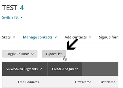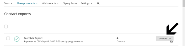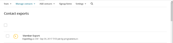 Note : Dans Mailchimp, vous pouvez également exporter vos contacts par "Segment" ou par "Group". Pour obtenir la procédure complète pour l'exportation des contacts dans Mailchimp, cliquez ici.