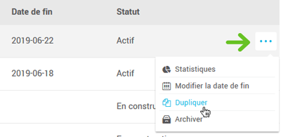 - Cliquez sur le menu d'actions à la droite du sondage et sélectionnez Dupliquer.