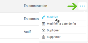 - Cliquez sur le menu d'actions à la droite du sondage et sélectionnez Modifier.