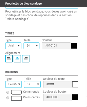 - Dans le panneau latéral à votre droite, sous le volet Propriétés du bloc sondage, modifiez la mise en forme des éléments désirés.