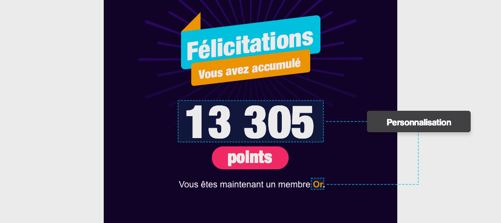 C’est très simple. Pour y arriver, on utilise des variables de personnalisation qui sont aussi connues sous le nom de "merge tags", "placeholders" ou "champs de fusion" (pour les adeptes de Word).  Chaque champ (régulier ou personnalisé) possède sa propre variable. Il suffit donc d'ajouter celle reliée à l'information à personnaliser à l’endroit où vous souhaitez que celle-ci apparaisse dans votre contenu. Ces variables dynamiques sont remplacées automatiquement dans vos envois par la valeur enregistrée dans la fiche de chaque abonné.