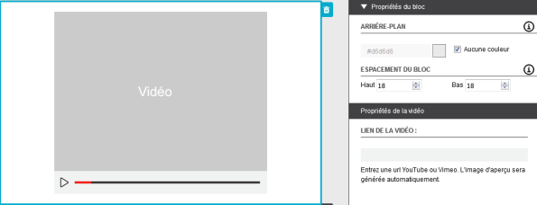 Note : Les blocs vidéo ne sont pas disponibles dans les modèles issus du mode Code HTML