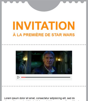 Plusieurs clients nous demandent : est-ce possible d'insérer une vidéo dans un courriel? Malheureusement, il n’est pas possible d’intégrer une vidéo directement dans un courriel. Les logiciels courriel ne supportent ni les iframes ni les scripts nécessaires à la lecture de ce type de fichiers. La méthode la plus efficace pour faire parvenir votre vidéo à vos contacts est d’insérer une image dans votre courriel et d’y mettre un lien vers la vidéo.